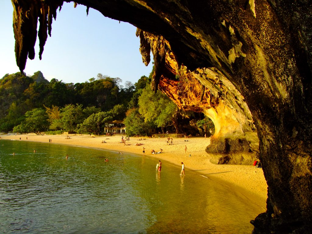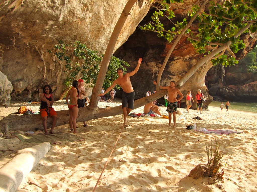 Phra Nang Beach, part of Railay, was my favorite beach on the trip. Here you could climb, relax in the soft sand, play on slacklines, and jump off cliffs.