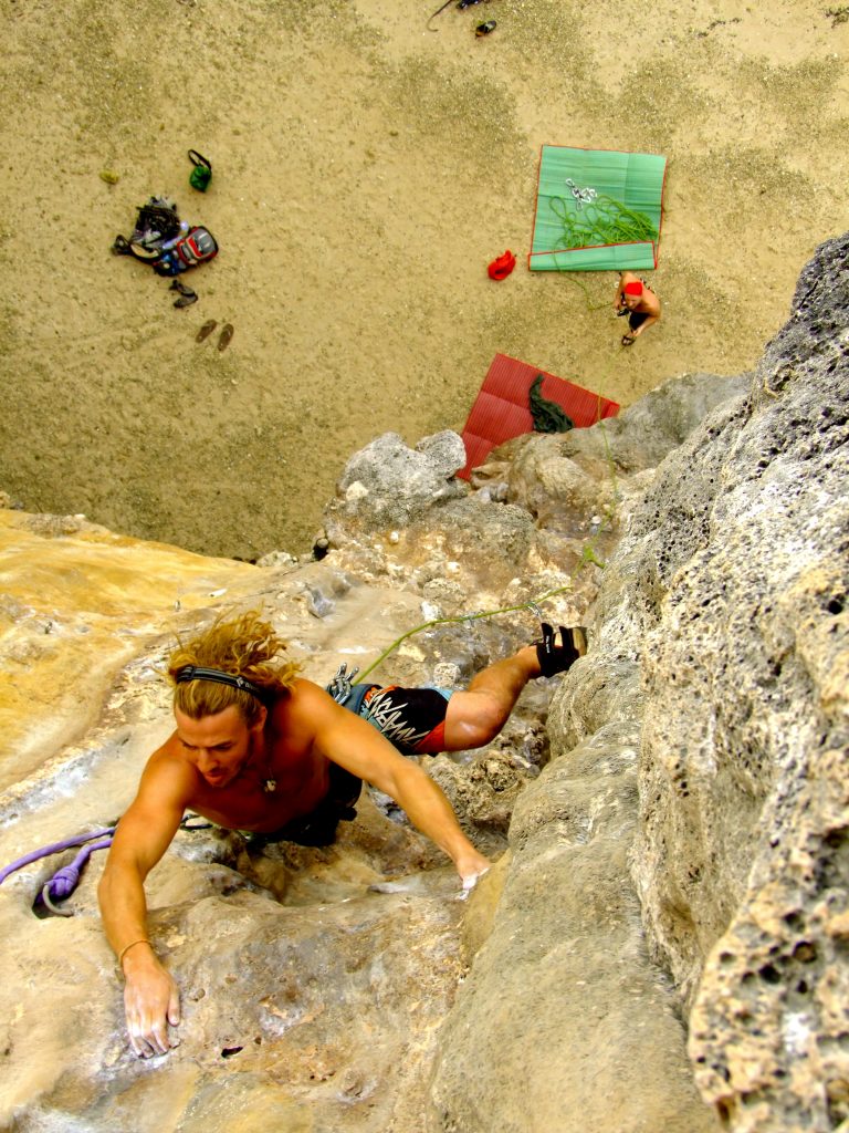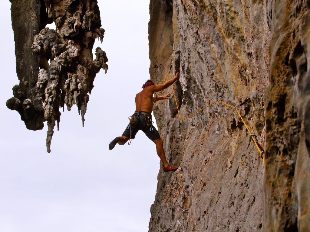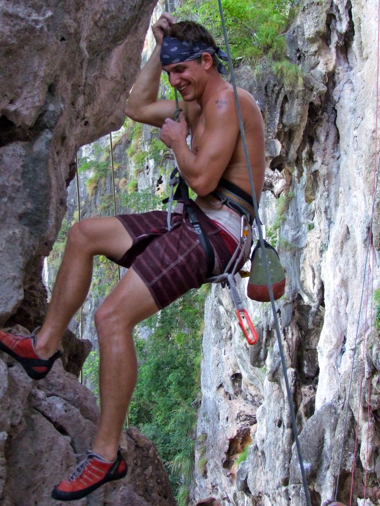 One of the world’s largest reclining Buddha statues located in the Wat Pho temple in Bangkok. It is 15 meters tall and 43 meters long and is a popular attraction for both locals and tourists. Inside the temple are 108 bowls where people drop coins to bring good fortune and help maintain the wat, which is Thai for temple. Many climbers consider the Krabi region of Thailand one of the best rock climbing locations in the world. For the first month of our trip we stayed in Railay, a small peninsula with access to nearly 1,000 sport climbing routes. We climbed everyday and ended up ascending close to 200 routes. This picture shows Railay East and West which is home to about 500 local residents and brings in young tourists looking to climb, enjoy the beautiful beaches, and party late into the night. It’s not hard to make friends when travelling through Southeast Asia. We took a sunset cruise one night and met people from London, Austria, Canada, Australia, and Czechoslovakia. While our guides cooked up fresh fish we enjoyed a couple Chang beers, one of Thailand’s most popular brews. Beautiful sunsets happen every night in Thailand. This one highlights the karst topography, the striking limestone formations that rise straight out of the ocean. They are perfect for deep water soloing, a type of rock climbing that requires no ropes and falls plunge you into the ocean below. On Railay Beach West sunset volleyball was a daily occurrence. Locals and tourists play together as the sun dips below the horizon. Animah loved to jump and climb all over people. His hands were so strong and looked just like tiny human hands. Sending a route in the jungles of Railay. Longtail boats line the shore with Happy Island looming in the background. From the boats locals sold fruit smoothies and pad thai while climbers work on topping out several routes on Happy Island. My climbing partner works a route while one of the many friends we made belays below. This was one of my favorite routes during the trip. Most of the climb went horizontal instead of vertical with about 300 ft of empty air below. Here I’m getting ready to transition onto the hanging stalactite and top out.