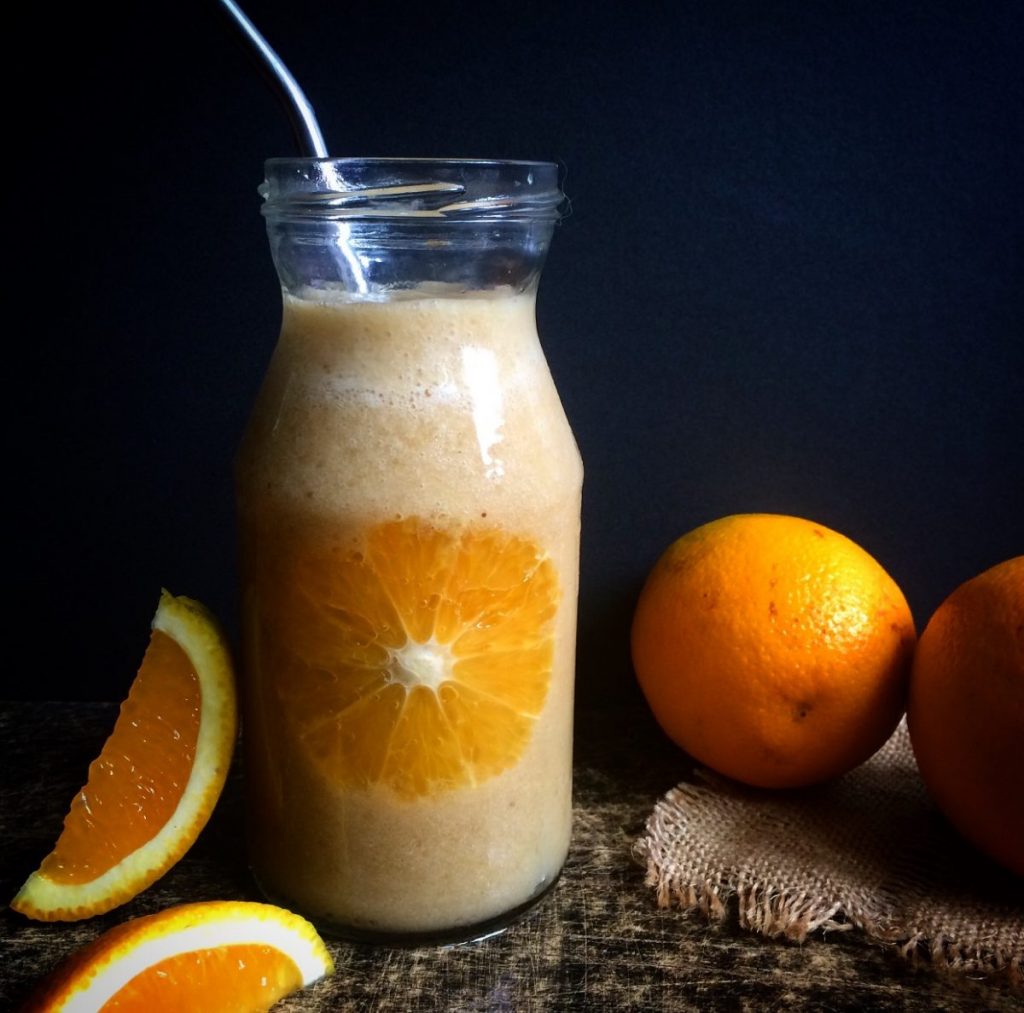 Blend all ingredients in a high-speed blender until smooth (about 30-45 seconds). Pour into a tall glass and enjoy.